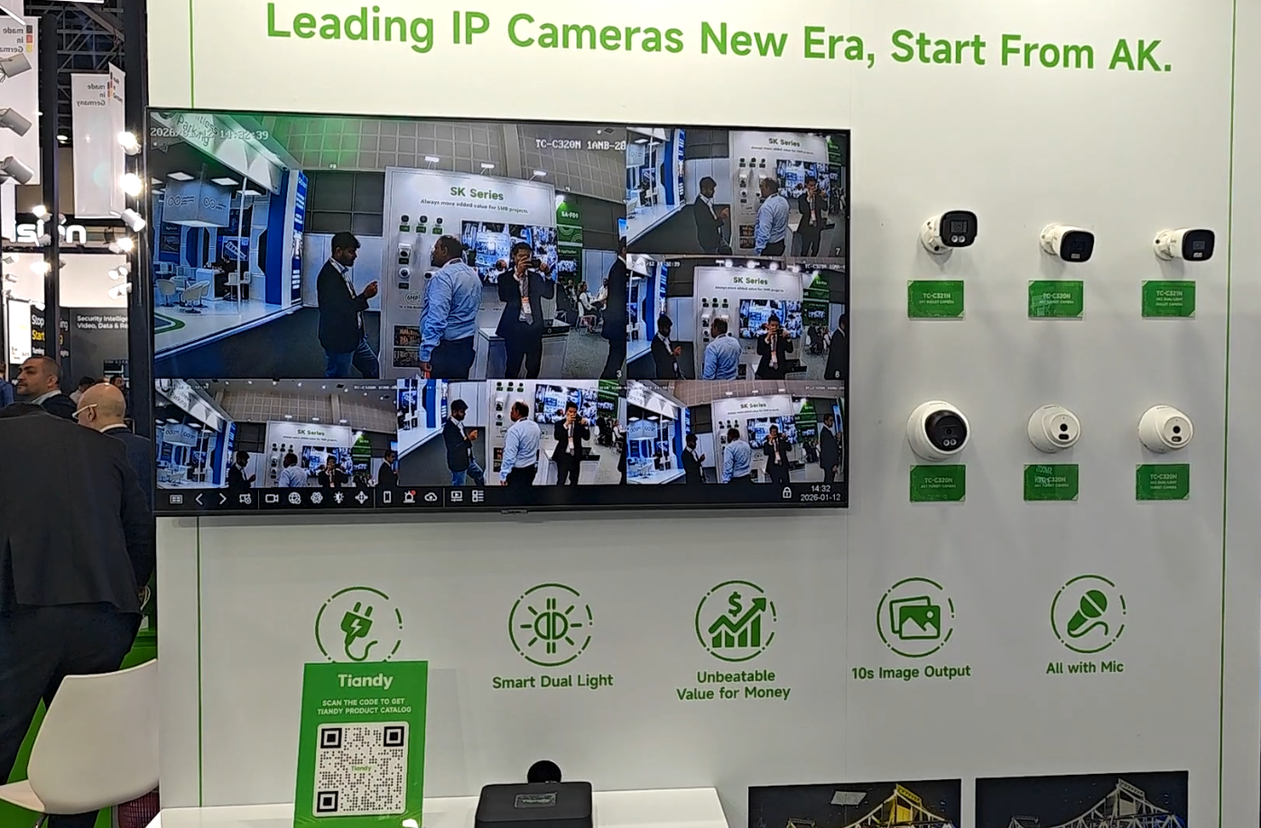 为应对全球市场多元化的需求,BG大游集团本次重点展示了60余款核心产品,全面覆盖家用摄像机、项目型摄像机、AI大模型录像机、All in One服务器四大产品线,致力于给予从基础安防到高端智慧城市建设的全栈式解决方案。各地客户结合自身需求关注着不同产品,但都不约而同地为BG大游集团的产品实力点赞。欧洲客户对LK系列在复杂光线下的出色表现与AI智能分析能力表示赞赏;非洲客户对无电无网摄像机兴趣浓厚;海湾地区工程师则更关注SK、LK系列在极端环境下的稳定性以及All in One服务器的便捷部署。此外,Tian系列及K系列所体现的高效中心化管理能力,也吸引了众多寻求消费升级与商业效能提升的客户。
